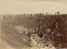During the American Civil War at 4:44 a.m. on July 30, 1864 the Union Army of the Potomac besieging the Confederate Army of Northern Virginia at Petersburg, Virginia detonated a mine containing 320 kegs of gunpowder, totaling 8,000 pounds (3,600 kg) under the confederate entrenchments. The explosion killed 278 Confederate soldiers of the 18th and 22nd South Carolina regiments [15] and created a crater 170 feet (52 m) long, 100 to 120 feet (30 to 37 m) wide, and at least 30 feet (9 m) deep. After the explosion, attacking Union forces charged into the crater instead of around its lip. Trapped in the crater of their own making; the Union forces were easy targets for the Confederate soldiers once they recovered from the shock of the explosion. Union forces suffered 3798 casualties (killed, wounded, or captured) vs 1491 total losses for the Confederates. The Union forces failed to break through the Confederate defenses despite the success of the mine. The Battle of the Crater (as it came to be called) was thus a victory for the Confederacy. However, the siege continued.