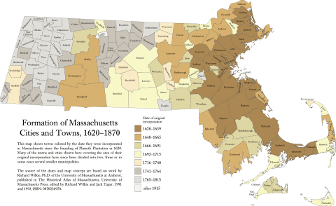 - ^ "Massachusetts City and Town Incorporation and Settlement Dates". Commonwealth of Massachusetts. Retrieved 2009-05-06.