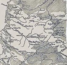 Fighting continued in no man's land at the west end of La Boisselle, where the opposing lines were 200 yd (180 m) apart, even during lulls along the rest of the Somme front. On the night of 8/9 March, a German sapper inadvertently broke into French mine gallery, which he found to have been charged with explosives; a group of volunteers took 45 nerve racking minutes to dismantle the charge and cut the firing cables. The French mine workings were taken over when the British moved into the Somme front.[3] George Fowke moved the 174th and 183rd Tunnelling Companies into the area, but at first the British did not have enough miners to take over the large number of French shafts; the problem was temporarily solved when the French agreed to leave their engineers at work for several weeks.[4] On 24 July, 174th Tunnelling Company established headquarters at Bray, taking over some 66 shafts at Carnoy, Fricourt, Maricourt and La Boisselle. No man's land just south-west of La Boisselle was very narrow, at one point about 50 yd (46 m) wide, and had become pockmarked by many chalk craters.[2] To provide the tunnellers needed, the British formed the 178th and 179th Tunnelling Companies in August, followed by the 185th and 252nd Tunnelling Companies in October.[4] The 181st Tunnelling Company was also present on the Somme.[5]