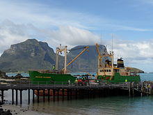 The first reported sighting of Lord Howe Island took place on 17 February 1788, when Lieutenant Henry Lidgbird Ball, commander of the Armed Tender HMS Supply, was en route from Botany Bay to found a penal settlement on Norfolk Island.[8] On the return journey, Ball sent a party ashore on Lord Howe Island to claim it as a British possession.[9] It subsequently became a provisioning port for the whaling industry,[10] and was permanently settled in June 1834.[11] When whaling declined, the 1880s saw the beginning of the worldwide export of the endemic kentia palms,[12] which remains a key component of the Island's economy. The other continuing industry, tourism, began after World War II ended in 1945.