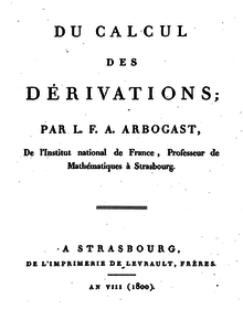 - Arbogast, L. F. A. (1800), Du calcul des derivations (in French), Strasbourg: Levrault, pp. xxiii+404, Entirely freely available from Google books.