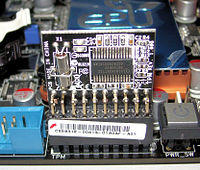 LPC's main advantage is that the basic bus requires only seven signals, greatly reducing the number of pins required on peripheral chips. An integrated circuit using LPC will need 30 to 72 fewer pins than its ISA equivalent. It is also easier to route on modern motherboards, which are often quite crowded. The clock rate was chosen to match that of PCI in order to further ease integration. Also, LPC is intended to be a motherboard-only bus. No connector is defined, and no LPC peripheral daughterboards are available, except Trusted Platform Modules (TPMs) with a TPM daughterboard whose pinout is proprietary to the motherboard vendor[1] and POST cards for displaying BIOS diagnostic codes. Device discovery is not supported; since only motherboard devices or specific models of TPM are connected, the host firmware (BIOS, UEFI) image will include a static description of any devices and their I/O addresses expected to be present on a particular motherboard.