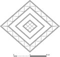 The lozenge motif dates from the Neolithic and Paleolithic period in Eastern Europe and represents a sown field and female fertility.[3] The ancient lozenge pattern often shows up in Diamond vault architecture, in traditional dress patterns of Slavic peoples, and in traditional Ukrainian embroidery. The lozenge pattern also appears extensively in Celtic art, art from the Ottoman Empire, and ancient Phrygian art.[4]