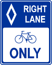 The lozenge (technically a mascle) can be used on public roadways in the United States and Canada to mark a specific lane for a particular use. The lane will usually be painted with a lozenge at a regular interval, and signage will be installed to indicate the restrictions on using the lane. This marking is most often used to denote high-occupancy vehicle lanes or bus lanes, with accompanying signage reading "◊ HOV LANE" or "◊ BUS LANE" and giving the requirements for a vehicle to be accepted. Prior to 17 January 2006, lozenges could also be used to mark bicycle-only lanes, often in conjunction with a bicycle icon.[13] In Japan and South Korea, a lozenge marked in white paint on the road indicates an upcoming uncontrolled pedestrian crossing.