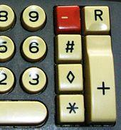 On equipment, especially calculators, the lozenge is used to mark the subtotal key. It is standardized in ISO 7000[11] as symbol ISO-7000-0650 ("Subtotal"). In a similar fashion, the square lozenge (⌑), part of the BCDIC character set, was often used on tabulation listings to indicate second level totals in banking installations in the 1960s.[10]