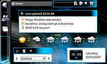 - The remaining large part of the display contains Home applets (roughly analogous to Apple Inc.'s Dashboard widgets), which can display data as well as serving as a shortcut to applications. These include an RSS reader, Internet radio player, Google search box and contact list by default, but can also be expanded with third party plug-ins.