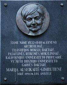 From 1936, Gimbutas participated in ethnographic expeditions to record traditional folklore and studied Lithuanian beliefs and rituals of death.[1] She graduated with honors from Aušra Gymnasium in Kaunas in 1938 and enrolled in the Vytautas Magnus University the same year, where she studied linguistics in the Department of Philology. She then attended the University of Vilnius to pursue graduate studies in archaeology (under Jonas Puzinas), linguistics, ethnology, folklore and literature.[1]