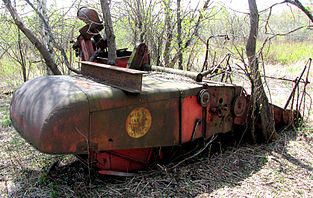 Grain harvesting was revolutionized by Massey engineer Tom Carroll in 1938, with the world's first self-propelled combine[2] — the No. 20. It was too heavy and expensive for extensive mass production, but served as a guide for the design of the lighter and less costly No. 21 which was tested in 1940, and put on sale in 1941. The Massey-Harris No. 21 Combine was commemorated with a Canada Post stamp on June 8, 1996.[9] E.P. Taylor, one of C.D. Howe's dollar-a-year men, joined the board of directors in 1942, and Eric Phillips joined management in 1946.
