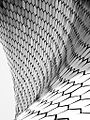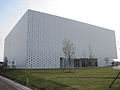 Towards the end of the 20th century, novel mathematical constructs such as fractal geometry and aperiodic tiling were seized upon by architects to provide interesting and attractive coverings for buildings.[4] In 1913, the Modernist architect Adolf Loos had declared that "Ornament is a crime",[103] influencing architectural thinking for the rest of the 20th century. In the 21st century, architects are again starting to explore the use of ornament. 21st century ornamentation is extremely diverse. Henning Larsen's 2011 Harpa Concert and Conference Centre, Reykjavik has what looks like a crystal wall of rock made of large blocks of glass.[103] Foreign Office Architects' 2010 Ravensbourne College, London is tessellated decoratively with 28,000 anodised aluminium tiles in red, white and brown, interlinking circular windows of differing sizes. The tessellation uses three types of tile, an equilateral triangle and two irregular pentagons.[104][105][l] Kazumi Kudo's Kanazawa Umimirai Library creates a decorative grid made of small circular blocks of glass set into plain concrete walls.[103]