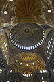 The Christian patriarchal basilica of Haghia Sophia in Byzantium (now Istanbul), first constructed in 537 (and twice rebuilt), was for a thousand years[i] the largest cathedral ever built. It inspired many later buildings including Sultan Ahmed and other mosques in the city. The Byzantine architecture includes a nave crowned by a circular dome and two half-domes, all of the same diameter (31 metres (102 ft)), with a further five smaller half-domes forming an apse and four rounded corners of a vast rectangular interior.[79] This was interpreted by mediaeval architects as representing the mundane below (the square base) and the divine heavens above (the soaring spherical dome).[80] The emperor Justinian used two geometers, Isidore of Miletus and Anthemius of Tralles as architects; Isidore compiled the works of Archimedes on solid geometry, and was influenced by him.[12][81]