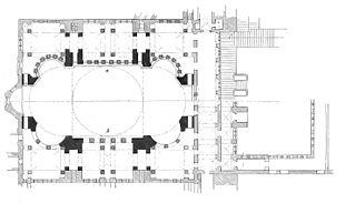 The Selimiye Mosque in Edirne, Turkey, was built by Mimar Sinan to provide a space where the mihrab could be see from anywhere inside the building. The very large central space is accordingly arranged as an octagon, formed by eight enormous pillars, and capped by a circular dome of 31.25 metres (102.5 ft) diameter and 43 metres (141 ft) high. The octagon is formed into a square with four semidomes, and externally by four exceptionally tall minarets, 83 metres (272 ft) tall. The building's plan is thus a circle, inside an octagon, inside a square.[74]