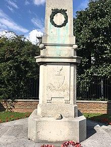 The former coat of arms can still be seen on Hampstead War Memorial.