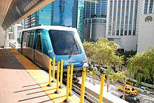 A double-unit Metromover train in the Arts & Entertainment District | ||||||||||||||||||||||||||||||||||||||||||||||||||||||||||||||||||||||||||||||||||||||||||||||||||||||||||||||||||||||||||||||||||||||||||||||||||||||||||||||||||||||||||||||||||||||||||||||||||||||||||||||||||||||||||||||||||||||||||||||||||||||||||||||||||||||