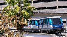 Metrorail is an elevated heavy rail rapid transit system. It has two lines on 24.4 mi (39 km) of track with termini west of Hialeah, at Miami International Airport, and in Kendall.