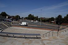 Other landmarks include: the Roman Theatre built on the Bull Ring on the site of the old town hall and library; and the town bridge, opened in 1931 as a replacement for an earlier bridge.[60][61] Middlewich has a town cemetery with a twin chapel dating from 1859 by Bellamy & Hardy;[62] it contains the Commonwealth war graves of 21 British service personnel, 17 from World War I and 4 from World War II.[63] The Victoria technical school and library, which was opened in 1897, is a red brick and red terracotta building, "with a cupola but otherwise vaguely in the Loire style".[62] Since 1900, the building on Lewin Street has been used as offices by the Town Council.[60] One mile north of the town centre along King Street lies Ravenscroft Hall, which dates from 1837.[62]
