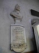 Milton died of consumption (not gout, state the Parish books of Bunhill Fields) on 8 November 1674 and was buried in the church of St Giles-without-Cripplegate, Fore Street, London.[45] According to an early biographer, his funeral was attended by "his learned and great Friends in London, not without a friendly concourse of the Vulgar."[46] A monument was added in 1793, sculpted by John Bacon the Elder.