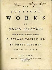 - ^ Explanatory Notes and Remarks on Milton's Paradise Lost (1734).