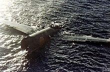 Designed to a strict specification to succeed the Mitsubishi G3M already in service, the G4M boasted very good performance and excellent range and was considered the best land-based naval bomber at the time.[2] This was achieved by its structural lightness and an almost total lack of protection for the crew, with no armor plating or self-sealing fuel tanks.[3] The G4M was officially adopted on 2 April 1941 but the aforementioned problems would prove to be a severe drawback, often suffering heavy losses; Allied fighter pilots nicknamed the G4M "The Flying Lighter" as it was extremely prone to ignition after a few hits.[2][1][3] It was not until later variants of the G4M2 and G4M3 that self-sealing fuel tanks, armor protection for the crew and better defensive armament was installed.