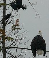 Birds that breed in colonies such as gulls are widely seen to attack intruders, including encroaching humans.[5] In North America, the birds that most frequently engage in mobbing include mockingbirds, crows and jays, chickadees, terns, and blackbirds. Behavior includes flying about the intruder, dive bombing, loud squawking and defecating on the predator. Mobbing can also be used to obtain food, by driving larger birds and mammals away from a food source, or by harassing a bird with food. One bird might distract while others quickly steal food. Scavenging birds such as gulls frequently use this technique to steal food from humans nearby. A flock of birds might drive a powerful animal away from food. Costs of mobbing behavior include the risk of engaging with predators, as well as energy expended in the process. The black-headed gull is a species which aggressively engages intruding predators, such as carrion crows. Classic experiments on this species by Hans Kruuk involved placing hen eggs at intervals from a nesting colony, and recording the percentage of successful predation events as well as the probability of the crow being subjected to mobbing.[6] The results showed decreasing mobbing with increased distance from the nest, which was correlated with increased predation success. Mobbing may function by reducing the predator's ability to locate nests (as a distraction) since predators cannot focus on locating eggs while they are under attack.