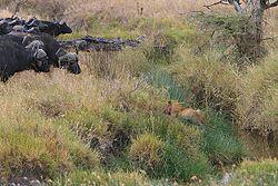 By cooperating to successfully drive away predators, all individuals involved increase their chances of survival and reproduction. An individual stands little chance against a larger predator, but when a large group is involved, the risk to each group member is reduced or diluted. This so-called dilution effect proposed by W. D. Hamilton is another way of explaining the benefits of cooperation by selfish individuals. Lanchester's laws also provide an insight into the advantages of attacking in a large group rather than individually.[19][20]