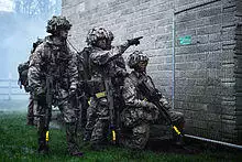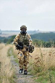 The British infantry section consists of eight men who are normally organised into two four-man infantry fireteams. While equipment formations can be tailored as required by section and platoon commanders, infantry sections are usually issued with the following:[3][4][5]