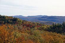 The Algonquin called the mountain "Manitonga Soutana" (Mountain of Spirits or the Devil). They claimed that the mountain emitted rumblings and swayed under their feet.[5] Logging began in the region in the 1850s. On January 12, 1895, Mont-Tremblant Park was created following the project to set up a sanatorium, which never saw the light of day. Unlike the "preservationist" vision that prevailed in United States and Canada, and that protected the park from exploitation, the province preferred a "conservationist" vision that promoted a reasonable use of the natural resources.[6] That is why logging remained in the park until 1981. Having an original area of 60 square kilometres (23 sq mi), the park was enlarged to 1,510 square kilometres (580 sq mi) in 1925.[7]