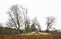- Court Hill, near Hill of Beith in the Barony of Beith. Dobie states that the Abbot of Kilwinning used it to administered justice to his vassals & tenants. It is a sub-oval, flat-topped mound, measuring 15.0 by 14.5 metres (49.2 by 47.6 ft) over all, 10.0 by 8.0 metres (32.8 by 26.2 ft) across the top, and 2.0 m (6.6 ft) high, situated at the foot of a small valley. A number of large stones are visible in the sides of the mound. It is turf-covered, and probably situated on a low outcrop, it is mostly an artificial work. It pre-dates the channelling of the burn which detours around it, the mound was probably isolated in this once marshy outflow of the former Boghall Loch (see NS35SE 14).[29] It does not seem to lie in the area identified by Smith.[68]
