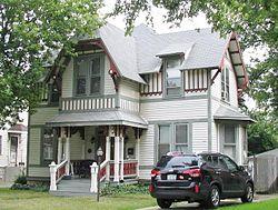 Both the president and the treasurer of the Blue Island Land and Building Company were executives of the Rock Island Railroad at the time the former company was incorporated, and they immediately used their influence to have a spur line built to serve the new community.[9] This arrangement lasted until 1889, when the "Suburban Line" as it exists today was built between Gresham and the Vermont Street station in Blue Island, at which time the dummy line, as it was called, was removed, much to the consternation of those who lived immediately nearby.[10] At this point Morgan Park received three handsome passenger depots (at 107th St., 111th St., and 115th St.), with the 111th Street station being an elaborate Queen Ann structure[11] designed by John T. Long[12] that is sited immediately east of Bohn Park. Morgan Park (and especially the area of it depicted in western part of the map included with this article) is primarily an upper middle-class community, with a housing stock to reflect this demographic, although there are several estate-sized houses on the ridge at Longwood Drive. Many of the buildings in the neighborhood were designed by notable architects, including Dwight Perkins, Dankmar Adler, Murray Hetherington, John Hetherington, Palliser, Palliser & Co., Normand S. Patton and Harry H. Waterman. The community is home to the Beverly Arts Center.