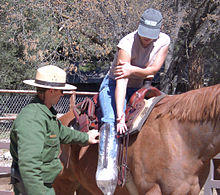 Transport in the saddle is used, but has more limited application than a hand carried or animal mounted litter. In the United States transport in the saddle is a method taught and used within the National Park Service in Yosemite National Park and some Mounted SAR personnel have this training.