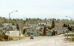 Situated at the eastern end of Porcupine Lake, just northeast of the community of South Porcupine. Porcupine represents the easternmost part of the city's urban core. It was originally known as "Golden City" in its early days. A fire devastated the area in 1911.[2] The great fire engulfed communities from the Porcupine to Cochrane. People fled to the lake to survive. It was founded at the beginning of the Porcupine Gold Rush.[3] Porcupine, Pottsville and South Porcupine were the three towns making up the 12 mile portion of gold-bearing land known as the Porcupine Camp.[1]
