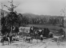 In the early 1930s during the Great Depression, the Upper Mudgeeraba Creek banks were the location of unemployment relief camps set up under the Income (Unemployment Relief) Tax Acts, 1930. The creek water helped sustain vegetable gardens for the residents, housed in timber and corrugated iron huts.[15] One aspect of the relief scheme put in place by the Queensland Government was to establish small banana plantations. In Upper Mudgeeraba, 300 acres (120 ha) divided into 50 blocks were made available to successful applicants to farm.[16][17][18]