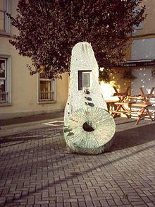 Among Mullingar's exports are items of pewterware produced by Mullingar Pewter.[16] Also associated with Mullingar is Genesis Fine Art, which produces gift items. The "Pilgrims" sculpture on Mullingar's Austin Friars Street, at which location there once stood an Augustinian Friary, was crafted by Genesis on foot of a commission by the Mullingar chapter of Soroptimists International.