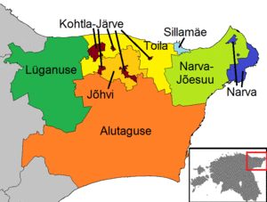 - Lüganuse Parish (includes the towns of Kiviõli and Püssi)