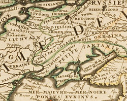 On a map, published in Amsterdam in 1645, the sparsely inhabited region to the north of the Azov sea is called Okraina and is characterized to the proximity to the Dikoia pole (Wild Fields), a posing a constant threat of raids of Turkic nomads (Crimean Tatars and the Nogai Horde). There is, however, also a specialised map published in 1648 of the Lower Dnieper region by Guillaume Le Vasseur de Beauplan called "Delineatio Generalis Camporum Desertorum vulgo Ukraina" (General illustration of desert plains, in common speech Ukraine), attesting to the fact that the term Ukraina was also in use.[24]