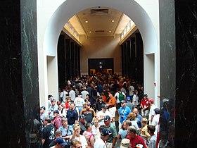 An expanded library and research facility opened in 1994.[5] Dale Petroskey became the organization's president in 1999.[6] In 2002, the Hall launched Baseball as America, a traveling exhibit that toured ten American museums over six years. The Hall of Fame has since also sponsored educational programming on the Internet to bring the Hall of Fame to schoolchildren who might not visit. The Hall and Museum completed a series of renovations in spring 2005. The Hall of Fame also presents an annual exhibit at FanFest at the Major League Baseball All-Star Game.