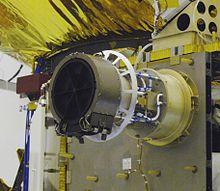 The RTG, model "GPHS-RTG", was originally a spare from the Cassini mission. The RTG contains 9.75 kg (21.5 lb) of plutonium-238 oxide pellets.[27] Each pellet is clad in iridium, then encased in a graphite shell. It was developed by the U.S. Department of Energy at the Materials and Fuels Complex, a part of the Idaho National Laboratory.[52] The original RTG design called for 10.9 kg (24 lb) of plutonium, but a unit less powerful than the original design goal was produced because of delays at the United States Department of Energy, including security activities, that delayed plutonium production.[53] The mission parameters and observation sequence had to be modified for the reduced wattage; still, not all instruments can operate simultaneously. The Department of Energy transferred the space battery program from Ohio to Argonne in 2002 because of security concerns.