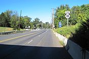 The route was originally designated as an east–west highway, whereas it is now signed north-south.[9] Although Route S-28 was used for the alignment for nearly three decades, the second state highway renumbering in 1953 eliminated the designation, and Route 18 was designated in place.[6]