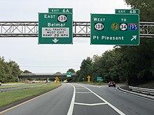 | 14.51 | 23.35 | 15B | Wayside Road south (CR 38 south) | Southbound exit only | ||