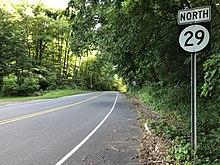 The current route was originally legislated in 1911 as part of the Delaware River Drive, a named state highway that was proposed to run from along the Delaware River from Trenton to the New York border in Montague Township.[9] Route 29 was originally defined in 1927 to run from Trenton to Newark. The original route ran from downtown Trenton along State Street and Sanhican Drive. From there, it followed its current alignment to Lambertville, where it followed present-day Route 179 to Ringoes to present-day County Route 514, which it followed to Woods Tavern. The route turned north on U.S. Route 206 (also designated Route 31) and followed that route to Somerville, where it followed U.S. Route 22 to Newark. The current alignment of Route 29 from Lambertville to Route 12 in Frenchtown was designated Route 29A in 1927.[10][11]