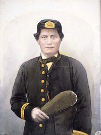 Titokowaru, who had fought in the Second Taranaki War, was the most skilful West Coast Māori warrior. He also assumed the roles of a priest and prophet of the extremist Hauhau movement of the Pai Mārire religion, reviving ancient rites of cannibalism and propitiation of Māori gods with the human heart torn from the first slain in a battle.[38] Although Titokowaru's forces were numerically small and initially outnumbered in battle 12 to one by government troops,[7] the ferocity of their attacks provoked fear among settlers and prompted the resignation and desertion of many militia volunteers, ultimately leading to the withdrawal of most government military forces from South Taranaki and giving Titokowaru control of almost all territory between New Plymouth and Wanganui. Although Titokowaru provided the strategy and leadership that had been missing among tribes that had fought in the Second Taranaki War and his forces never lost a battle during their intensive campaign, they mysteriously abandoned a strong position at Tauranga-ika Pā[39] and Titokowaru's army immediately began to disperse. Kimble Bent, who lived as a slave with Titokowaru's hapu after deserting from the 57th Regiment, told Cowan 50 years later the chief had lost his mana tapu, or sacred power, after committing adultery with the wife of another chief.[39]