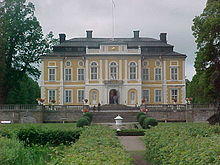 In 1690, Tessin married his mistress Hedvig Eleonora Stenbock (1658–1714), maid of honour of Queen Hedvig Elenora. However, at this time Tessin still belonged to the lesser nobility and his marriage to a woman from the high nobility was regarded as inappropriate. The marriage therefore had to take place secretly in Pomerania and, to repair the situation, Tessin had to produce a residence in accordance to his wife's status. Works on the Tessin Palace begun in 1694 and initially progressed slowly, but in 1697 Tessin and his family could move in and in 1701, two years after Tessin had been promoted to high nobility, the interior was completed to the extent Tessin could invite the widowed queen and the royal family to a supper.[4] Besides his own palace, the gardens of the Drottningholm Palace and Steninge Palace, both located not far from Stockholm, are often pointed out as his greatest achievements.[3]