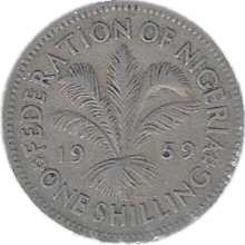 Coins were issued in 1959 in denominations of ½, 1, 3 and 6 pence, 1 and 2 shillings. The ½ and 1 penny coins were bronze and holed. The 3 pence coin, minted in nickel-brass, was a smaller version of the distinctive twelve-sided threepenny bits that were used in the UK, Fiji and Jersey. [3]The higher denominations were struck in cupro-nickel.
