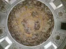 About three kilometers to the east, near the village of Nocera Superiore, there is the circular church of Santa Maria Maggiore, dating from the 7[8]th century. Its chief feature is its dome, ceiled with stone internally, but covered externally with a false roof. It is supported by 40 ancient columns, and in its construction resembles Santo Stefano Rotondo in Rome. The walls are covered with frescoes from the 14th century.