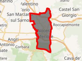 Nocera Inferiore (Neapolitan: Nucere, IPA: [nuˈ(t)ʃɛːrə], locally [nuˈ(t)ʃæːrə]) is a city and comune in Campania, Italy, in the province of Salerno, at the foot of Monte Albino, 20 kilometres (12 mi) east-southeast of Naples by rail. It has a population of 45,608 inhabitants and a surface of 20.94 square kilometers (8.08 sq mi) thus showing a population density of 2,200 inhabitants per square kilometer. It rises 43 metres above the sea level.