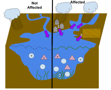 Nutrients mainly refers to inorganic matter from runoff, landfills, livestock operations and crop lands. The two primary nutrients of concern are phosphorus and nitrogen.[10]