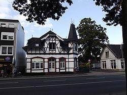 Although the modern German meaning of streng is "stern" or "strict",[3] the name actually comes from the so-called Strang ("string" or "strand"), a row of dunes. The Strang stretches from Bogenstraße to Nyhoegen Bridge on Bentheimer Straße. In the early 19th century, the textile manufacturer Ludwig Povel built workers' dwellings on the near part of the Strang in the Bogenstr.-Ludwigstr. area. On the farther part of the Strang, private houses were built in the 1930s and later.