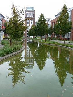 The Blanke (the article is used with the name in German – Die Blanke) was once a sunken heath and bog area, raised only at the edges, between which were water pools that glinted in the sunlight. Thus, they were also called Blänke. The two biggest were the "Große Blanke" and the "Kleine Blanke". By and by, this area dried up and before the Second World War there was building on the raised edges (Dorotheenstr., Klarastr.). After the war came more widespread settlement by refugees and textile workers. As a reference to the earlier heath ponds, the new neighbourhood was given the name Blanke, which is also so with some street names, such as Blankering and Innere Blanke. One can get an impression of what this area once looked like by visiting the Dutch nature protection area De Bergvennen west of Nordhorn.