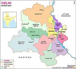 North Delhi is an administrative district of the National Capital Territory of Delhi in India. Alipur is the administrative headquarters of this district. North Delhi is bounded by the Yamuna River on the east and by the districts of North West Delhi to the north and west, West Delhi to the southwest, Central Delhi to the south, and North East Delhi to the east across the Yamuna. North Delhi has a population of 887,978 (2011 census), and an area of 59 km², with a population density of 13,019 people per km².