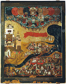 At the time of annexation, Novgorod became the third largest city under Muscovy (with 5,300 homesteads and 25–30 thousand inhabitants in the 1550s;[31]) and remained so until the famine of the 1560s and the Massacre of Novgorod in 1570. In the Massacre, Ivan the Terrible sacked the city, slaughtered thousands of its inhabitants, and deported the city's merchant elite and nobility to Moscow, Yaroslavl and elsewhere. The last decade of the 16th century was a comparatively favorable period for the city as Boris Godunov restored trade privileges and raised the status of Novgorod bishop. The German trading post was reestablished in 1603.[32] Even after the incorporation into the Russian state Novgorod land retained its distinct identity and institutions, including the customs policy and administrative division. Certain elective offices were quickly restored after having been abolished by Ivan III.[33]