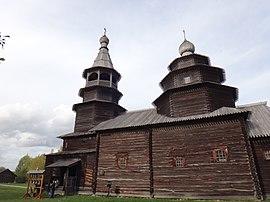 In Vitoslavlitsy, along the Volkhov River and the Myachino Lake, close to the Yuriev Monastery, a museum of wooden architecture was established in 1964. Over twenty wooden buildings (churches, houses and mills) dating from the 14th to the 19th century were transported there from all around the Novgorod region.